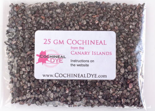 Top quality whole cochineal bugs produced in Europe, in the Canary Islands. Navigate to "Red Dyes" > "Cochineal" to read more about its history and biology and for instructions on how to dye with cochineal.